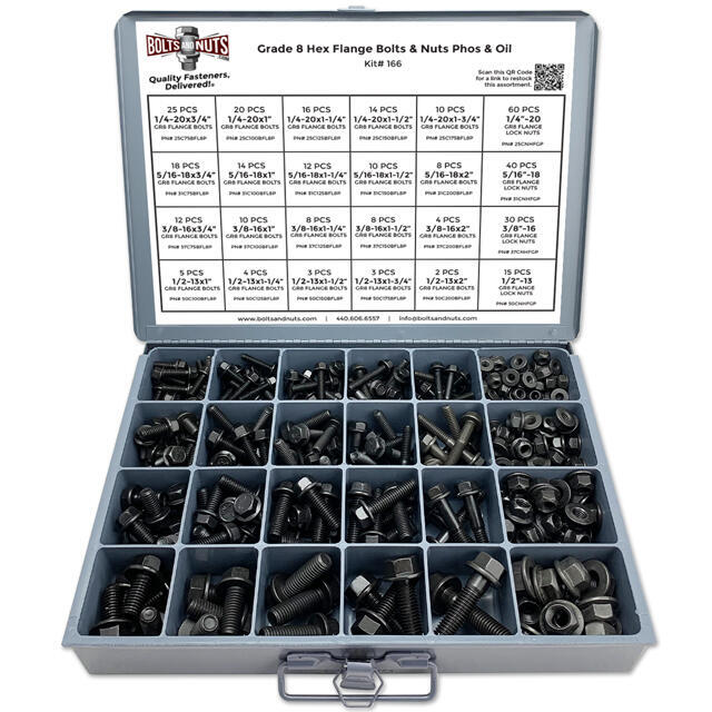 Home > Shop > Kits/Assortments > Flange Product Kits > Inch Grade 8 Hex Flange Frame Bolts & Lock Nuts Black Assortment - 352 PCS