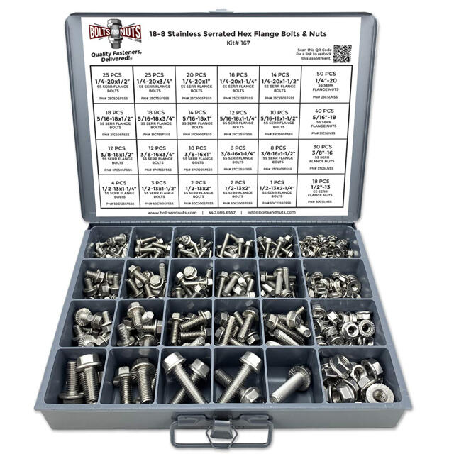 Home > Shop > Kits/Assortments > Flange Product Kits > Inch Stainless Steel Serrated Hex Flange Bolts & Lock Nuts Assortment - 371 PCS